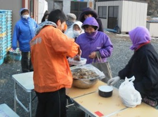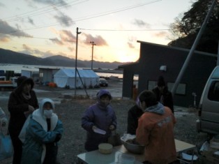 毎月、新潟から来てくれるチーム高田の皆といっしょに仮設住宅2ヶ所と在宅の方々対象に浜での炊き出しに訪れています。