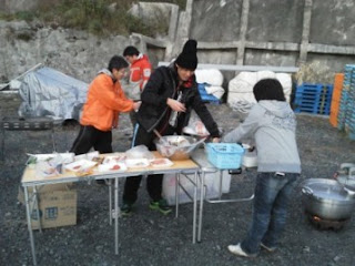仙台チームは今回準備が間に合わず、調理前の食材を持って行ってもら