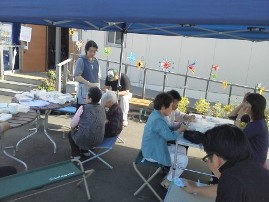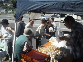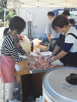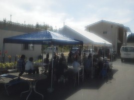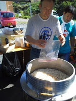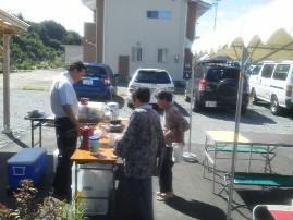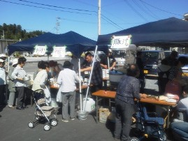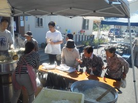 9/26(水) 福島県南相馬市鹿島町。とん汁、おむすび、焼き鳥。福島のお母さんたちや、京都、滋賀、秋田からも集っての混合チーム。今回、能登のHさんの呼びかけで実現しました