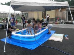 メンバーは、仙台仏青3名、支援センター2名、センターKさんの息子さんとその友だち5名。 この日は、仮設にビニールプールを持っていって水遊びをしました。 現地到着は12時半くらいでした。それからテントを立てたりプールを設置したり炊き出しの準備もしたりしました。炊き出しはのメニューはカキ氷とフランクフルトです。プールの水は500リットルのポリタンクに積んでいきました。久しぶりのバケツリレーもしました。去年が懐かしいです。 子ども達は、水着で来た子も数名いましたがほとんどが服を着たままの参加でしたが最終的にはびしょ濡れになるほど水遊びをしていました。子ども達は20人くらいは来てたと思います。その子どもたちと一緒に遊ぶ親御さんや、遊んでいる姿を喜んで見ている親御さんや近所のおじいちゃん、おばあちゃんなど大人の方も結構来てくれました。 |