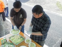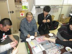 メンバーは、仙台仏青4名、チーム山形10名、チーム久留米3名。 9時半に別院集合、出発。途中、スーパー二店で買出ししました。10時半くらいには買出しが終わり、被災地に向かうことに。時間があったので途中マックで食事しました。 現地に着いたのが13時頃。それからチーム炊き出し班とチーム無料バザー班に分かれて活動。 その後、時間的にも人員的にも余裕があったので念珠作りもすることに。女性の方中心に10名くらい集まり作られてました。16時頃には念珠作りが終わりました。 それと並行してチーム炊き出し班は準備をします。メニューは焼き鳥、焼肉を中心にししゃもやイカや山芋焼きや野菜サラダでした。 炊き出しは15時から開始とのことでそれに合わせる様に炭の準備や提供の準備をしました。 世帯分に間に合うようなくらいの食料を持っていったのですがお土産などで炊き出しを持って帰られる方もおり食料が後半足りなくなってきました。その事を考慮してやっぱり少し多めに買うべきだったと反省。分量って難しいですね。 チーム山形、チーム久留米、チーム仙台共に最小限の指示で主体的に動いてくれたので助かりました。チーム久留米の人に「指示待ちをしていた」と後で言われましたが、待っていたのに考えながら常に動いてくれていたのはすごかったです。 |