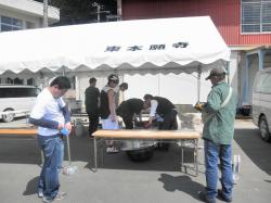 メンバーはチーム仙台、高田、富山、京都。 この日に寄磯小学校で運動会をするので炊き出しをして欲しいという依頼が高田有志会の方にあったみたいでそれの助っ人としていってきました。 カレーの具材は前日に仙台組の坊守さん6名が切ってくれたり、買い物をしてくれたりしました。 7時に集合、出発。現地に到着が9時半。 それからテントを張り炊き出しの準備へ。12時30分に提供を開始しました。その間に運動会種目でリレーがあり、我らボランティアグループも参戦。結果は三位の予選落ちでした。やっぱり現役は早かったです。 そんなこんなで炊き出しは多くの人で賑わいましたが特にトラブルもなく提供できました。頃合を見て撤収。15時前には小学校を後にしました。 別院に到着後、積荷の下ろしをして任務完了。その後に別院境内で机やイスを用意してお疲れさん会をしました。アルコールはあるもので、料理はKさんが作ってくれました。 |