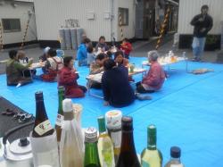 4/25、牡鹿半島の浜で居酒屋。念珠つくりなど。