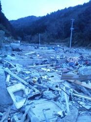 チーム能登6名と能登NHKの取材班4名、熊本のIくん、Mさん、センターと仙台仏青で4名。買出し組と瓦礫取材班に分かれて移動。大川小学校にも行きました。