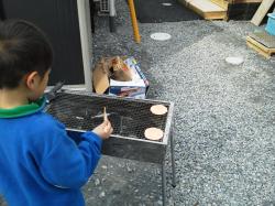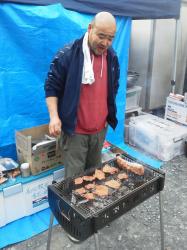 浜での炊き出しは焼き鳥とあさりの炊き込みごはんとトマト煮こみミートボール。