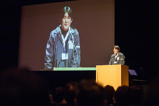表白(ひょうびゃく)。この場をどうのようなこととしてむかえるのか。どのような場としたいのかという願いを語ります。本当は表白を中心になって考えた3人で立ってほしかった。叫びたかったはずのもう1 人は舞台監督のため、断念しました。